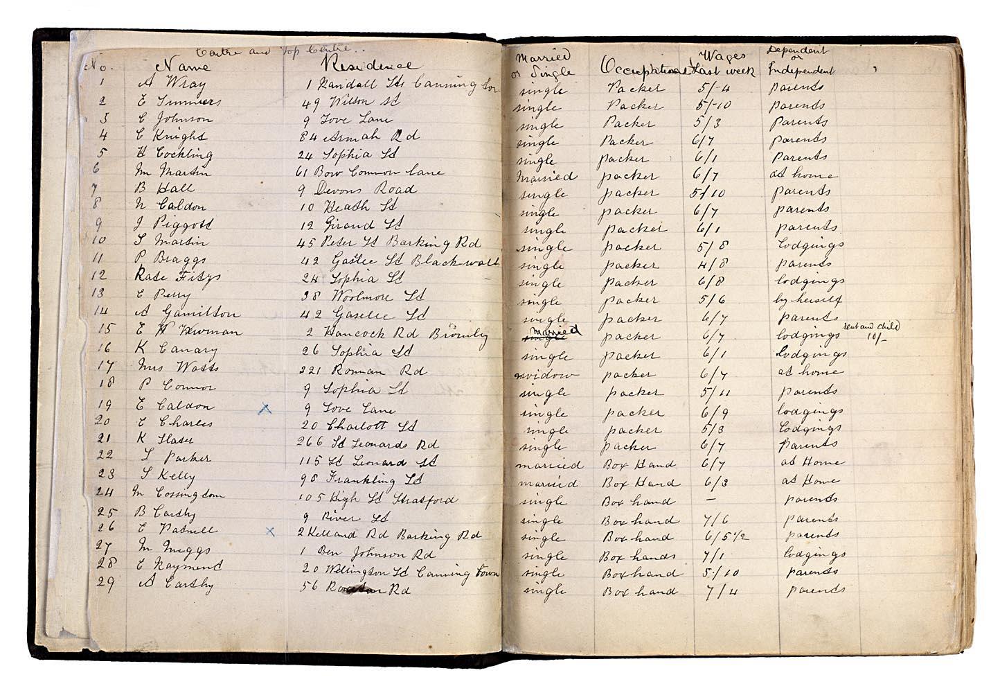 The image shows a page from the Match Girls strike register