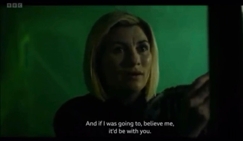 The outstanding acting in this resisted making this a simple, I can’t , or I wont, or this is it. This kind of relationship discussion is complex and difficult, and essentially these two already have a ‘relationship’, it’s just fairly atypical. But we’ve gone way beyond the friendship zone. The writer Ella Road very specifically refers to them/ this as a ‘queer relationship’ (Doctor Who Magazine) , and it would be odd to suggest otherwise if they were in any kind of ‘friend zone’.